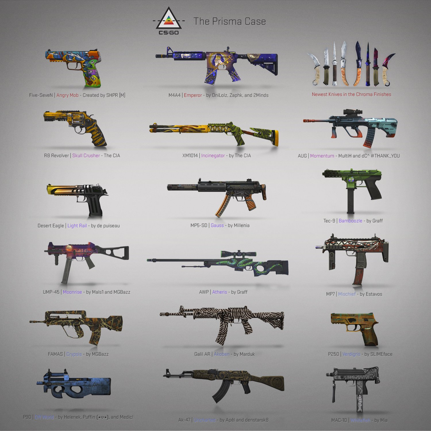 Cs Go Na Twitterze Today We Re Shipping The Prisma Case Featuring 17 Community Designed Weapon Finishes And 6 Finishes New To The Horizon Knives Alongside A Number Of Economy And Gameplay Changes And Features